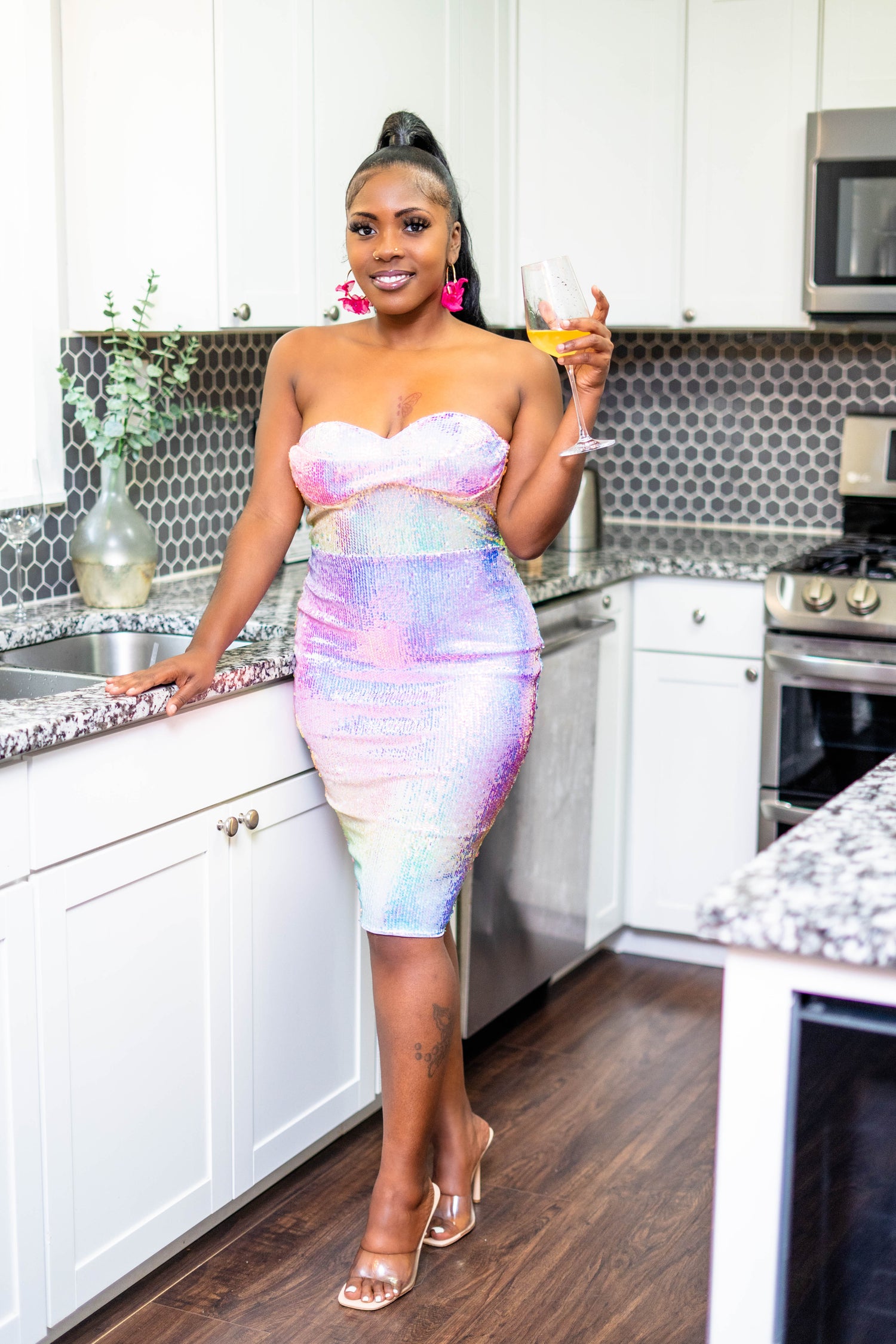 Feel Sweet as Cotton Candy in Cotton Candy Sequin Dresses!